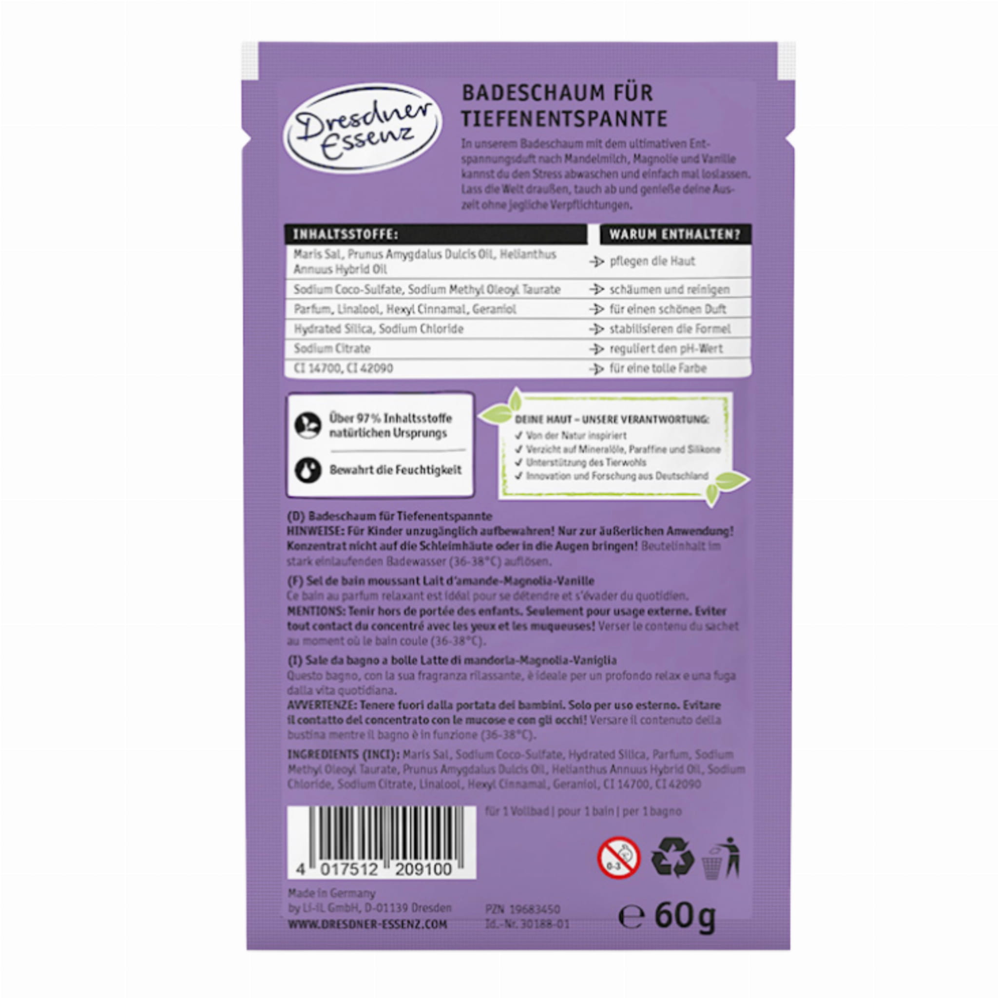PAKIET 12 x 60g - NIE, NIE DZISIAJ! - pianka do kąpieli 60g - DEins - DRESDNER ESSENZ